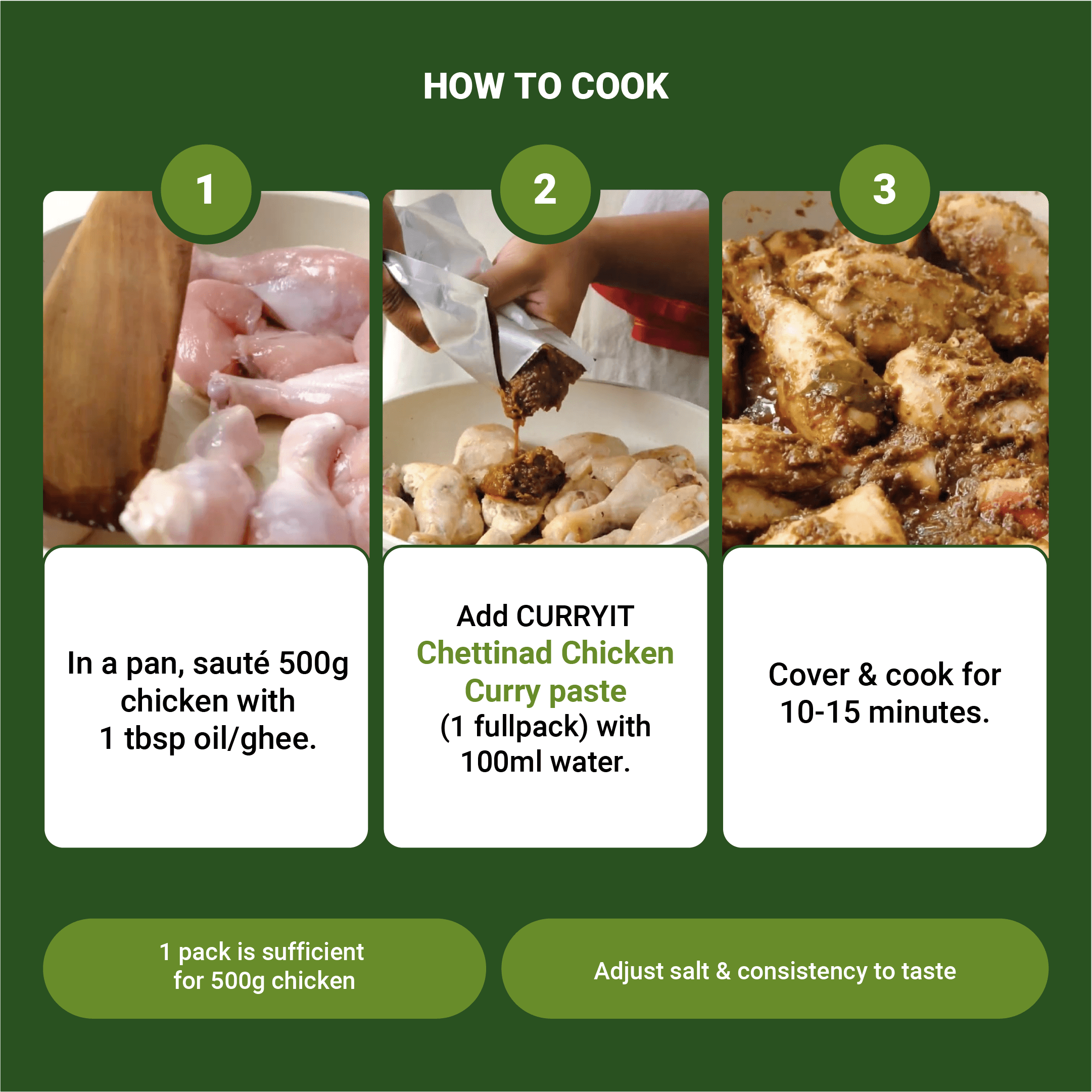 In a pan add CURRYiT Chettinad Chicken Curry paste (1 full pack)