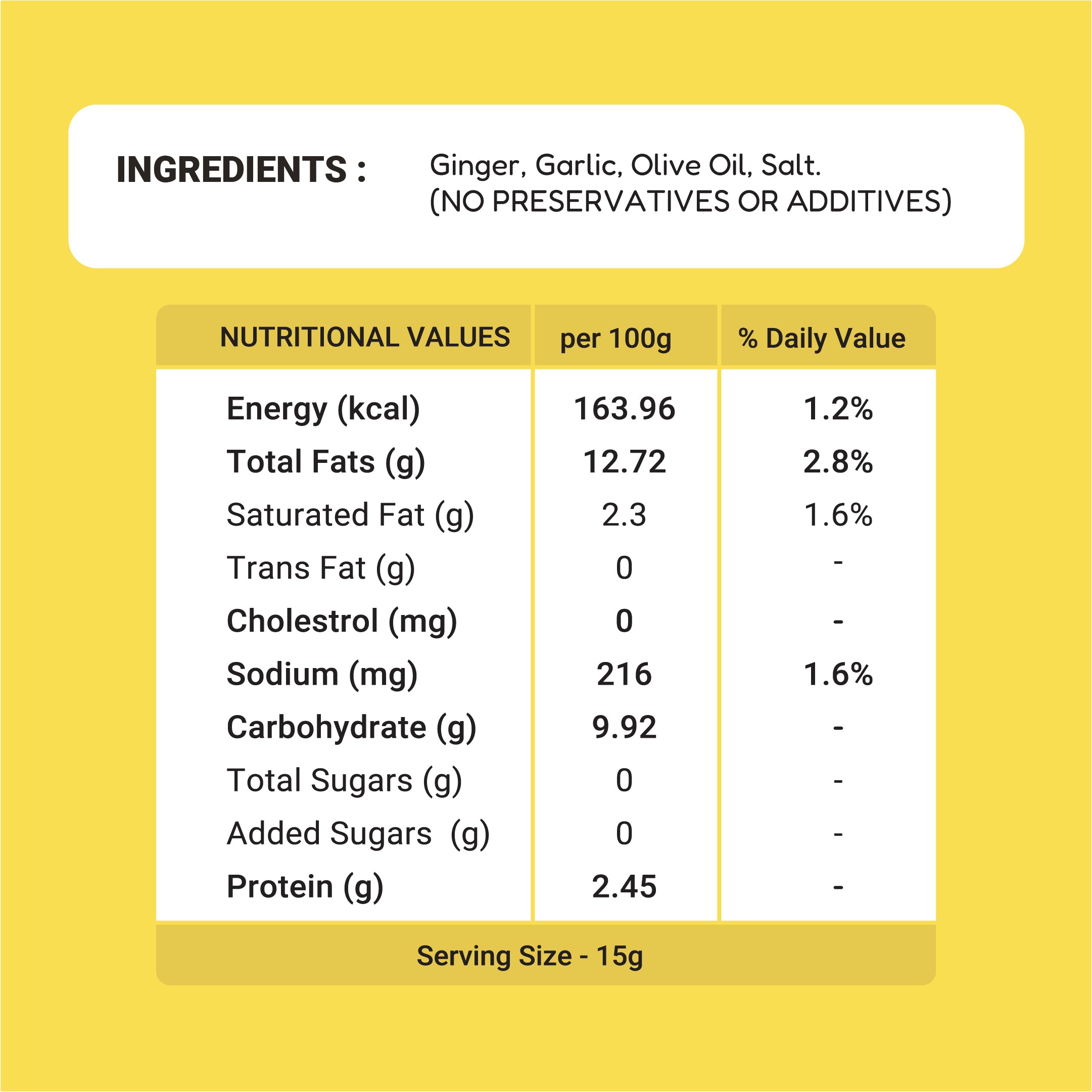 Introducing the only preservative-free Ginger Garlic Paste in India by CURRYiT – the freshest and purest blend for clean eating. Crafted to perfection, this paste mirrors the homemade goodness of grandma's kitchen, prepared on a sil batta (mortar & pestle) for a truly fresh, pure, and delicious flavor. Upgrade your meals with CURRYiT and embrace the goodness of clean, natural ingredients.