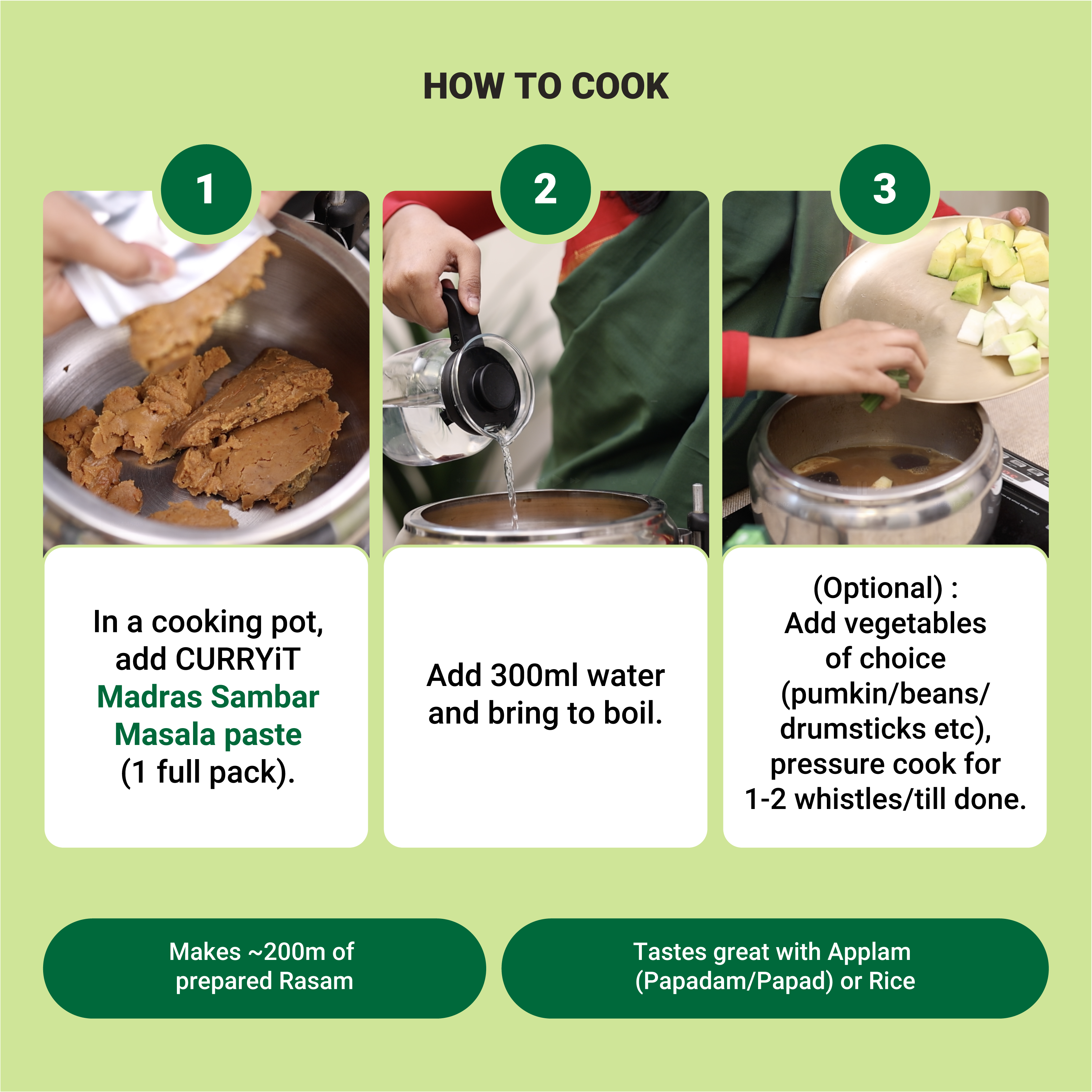 | 2-3 | Half Pack (120 g) | 500g Meat or 250g Paneer/Veggies |