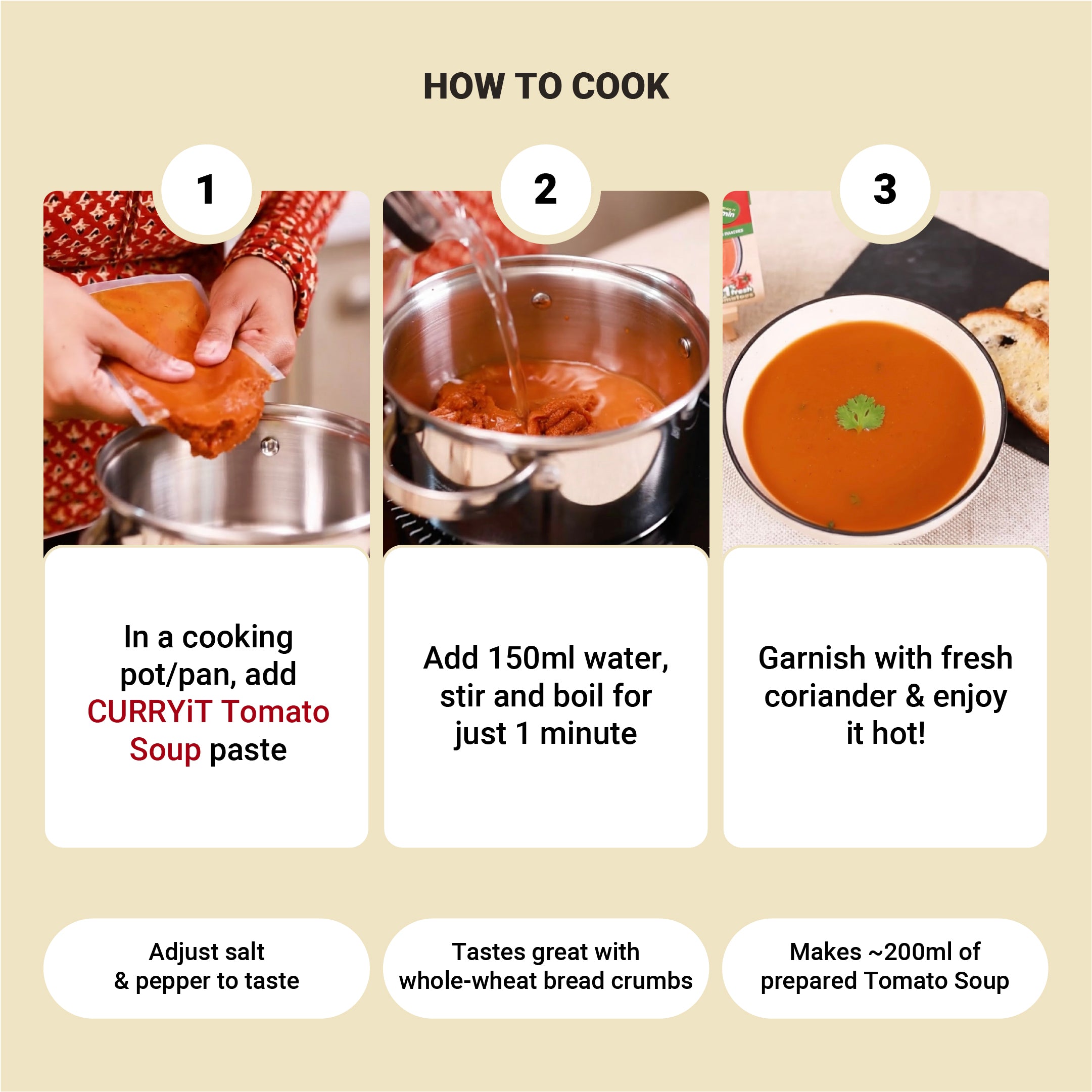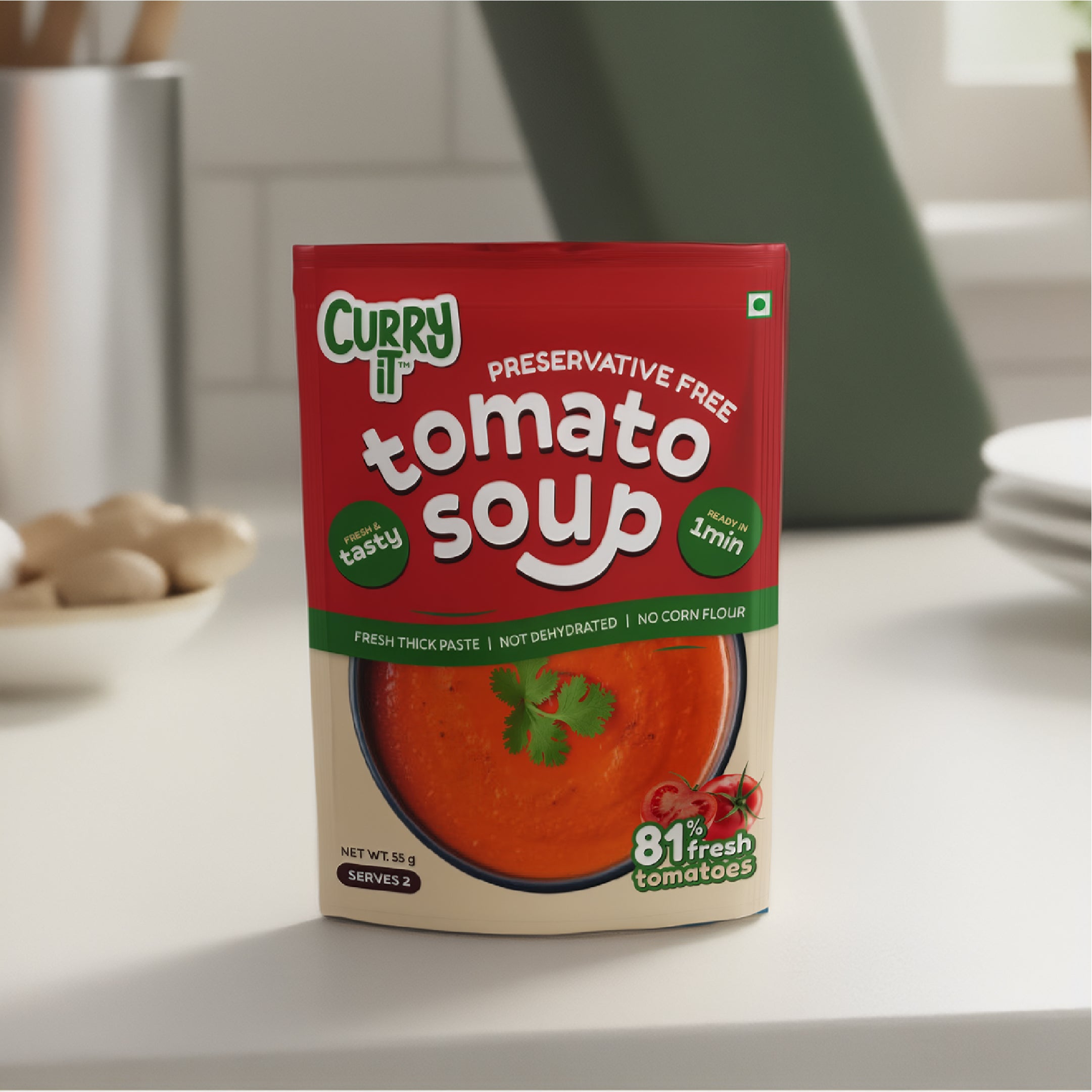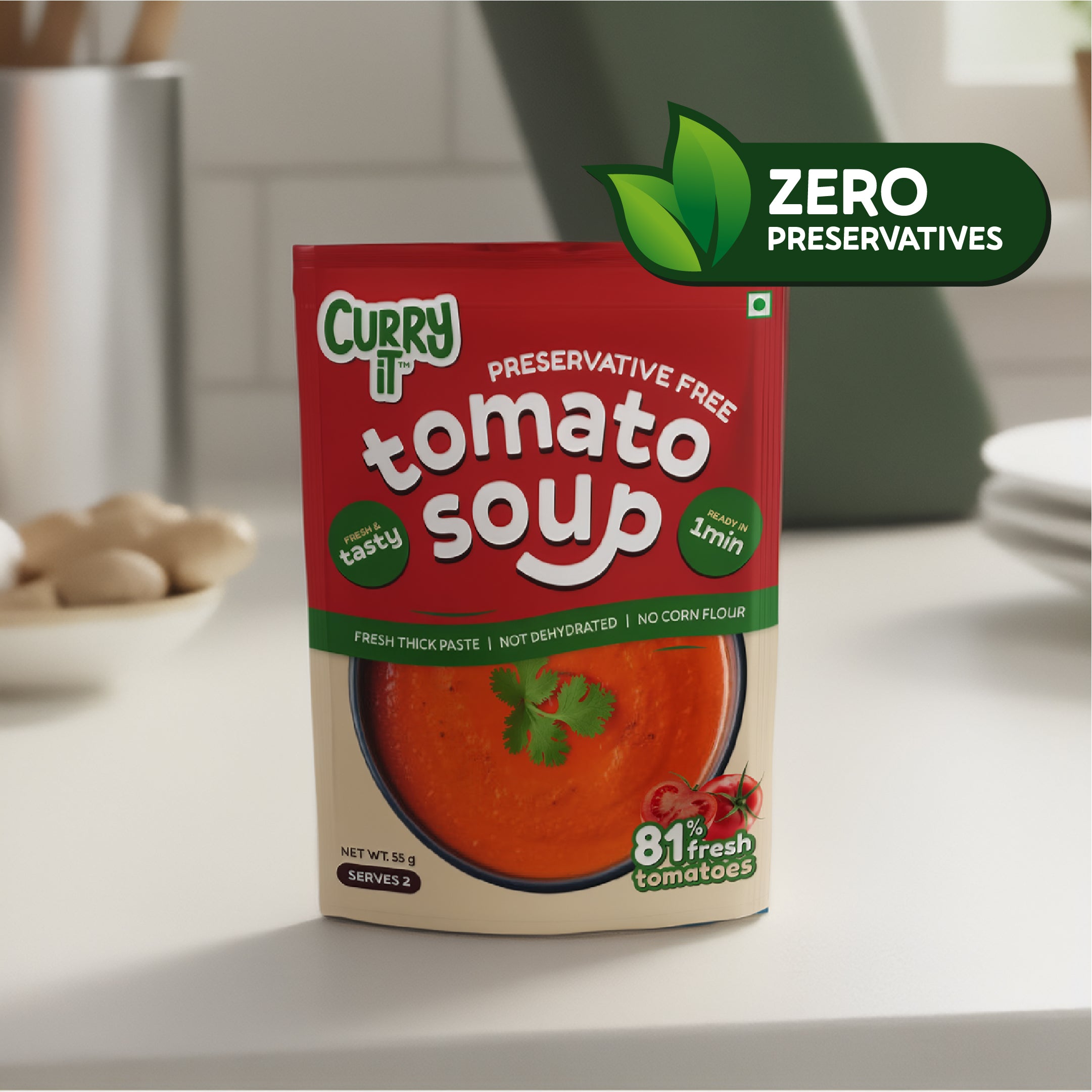 This traditional recipe uses fresh Indian (desi) tomatoes, diced and fire-roasted slowly for maximum flavor. Our soups are not dehydrated or freeze-dried, and we don’t use powdered tomatoes, vegetables, preservatives, cornflour, or maida. Each bowl is simply fresh tomatoes, vegetables, and a big dose of warmth, love, and comfort.